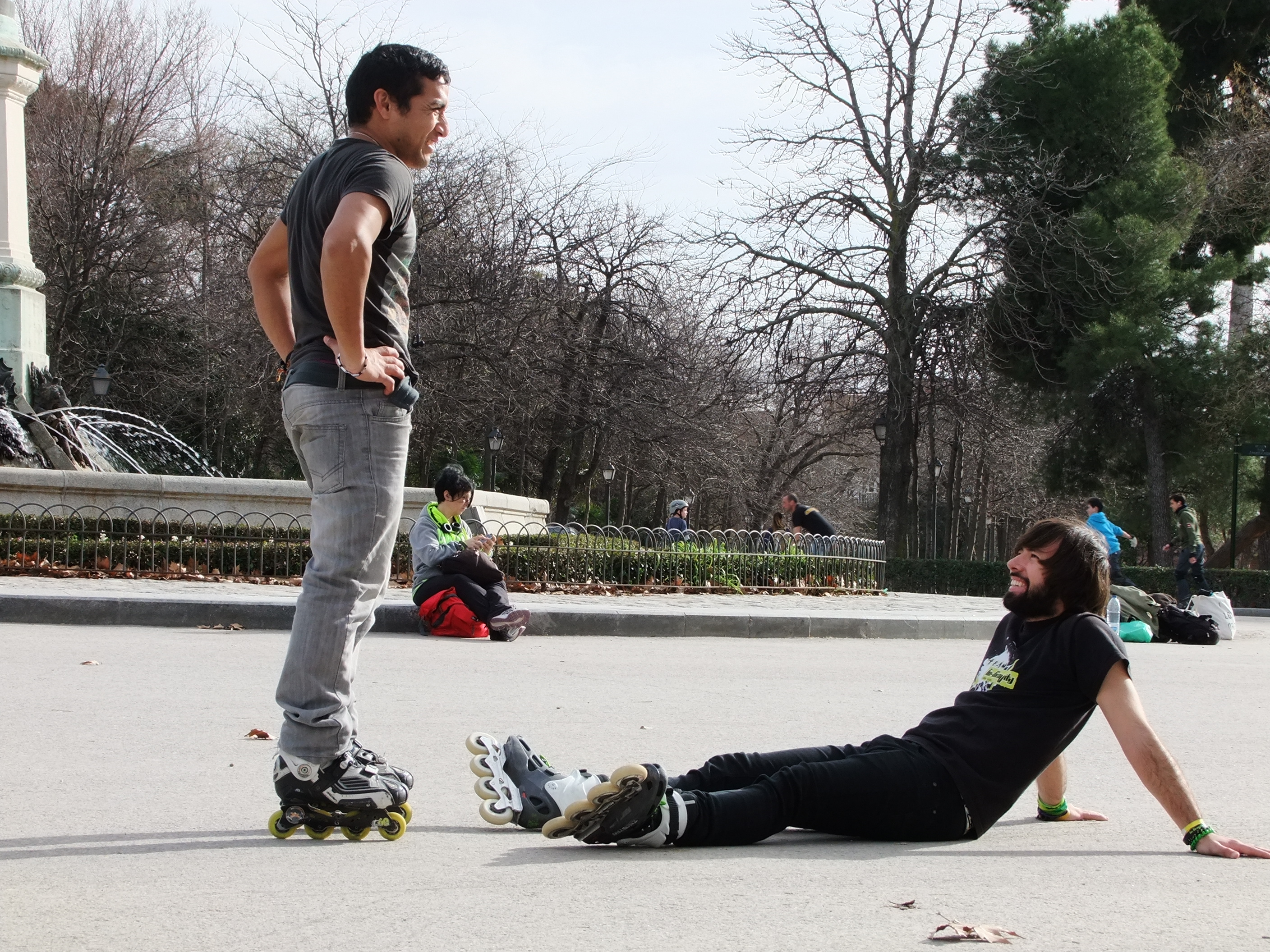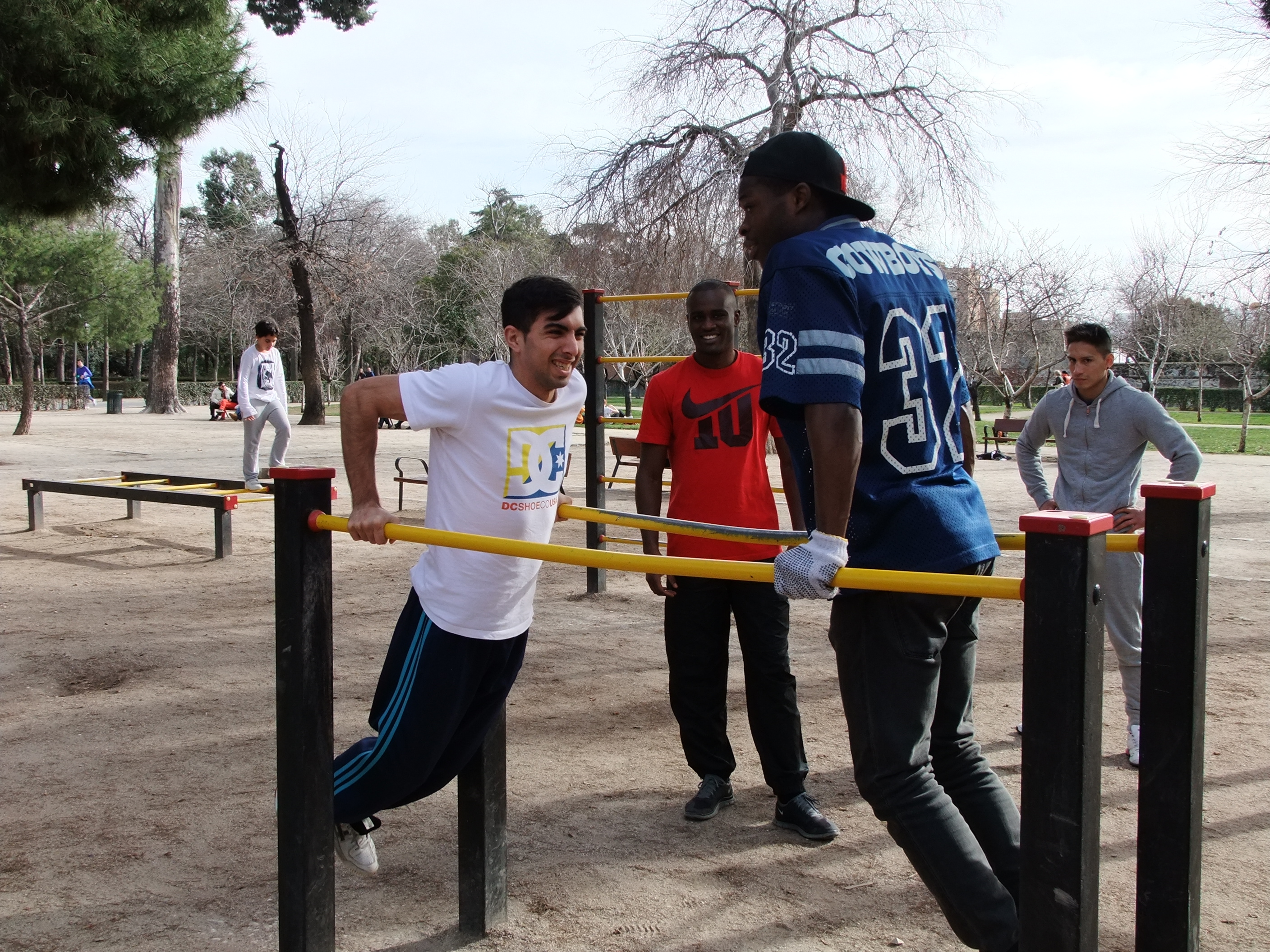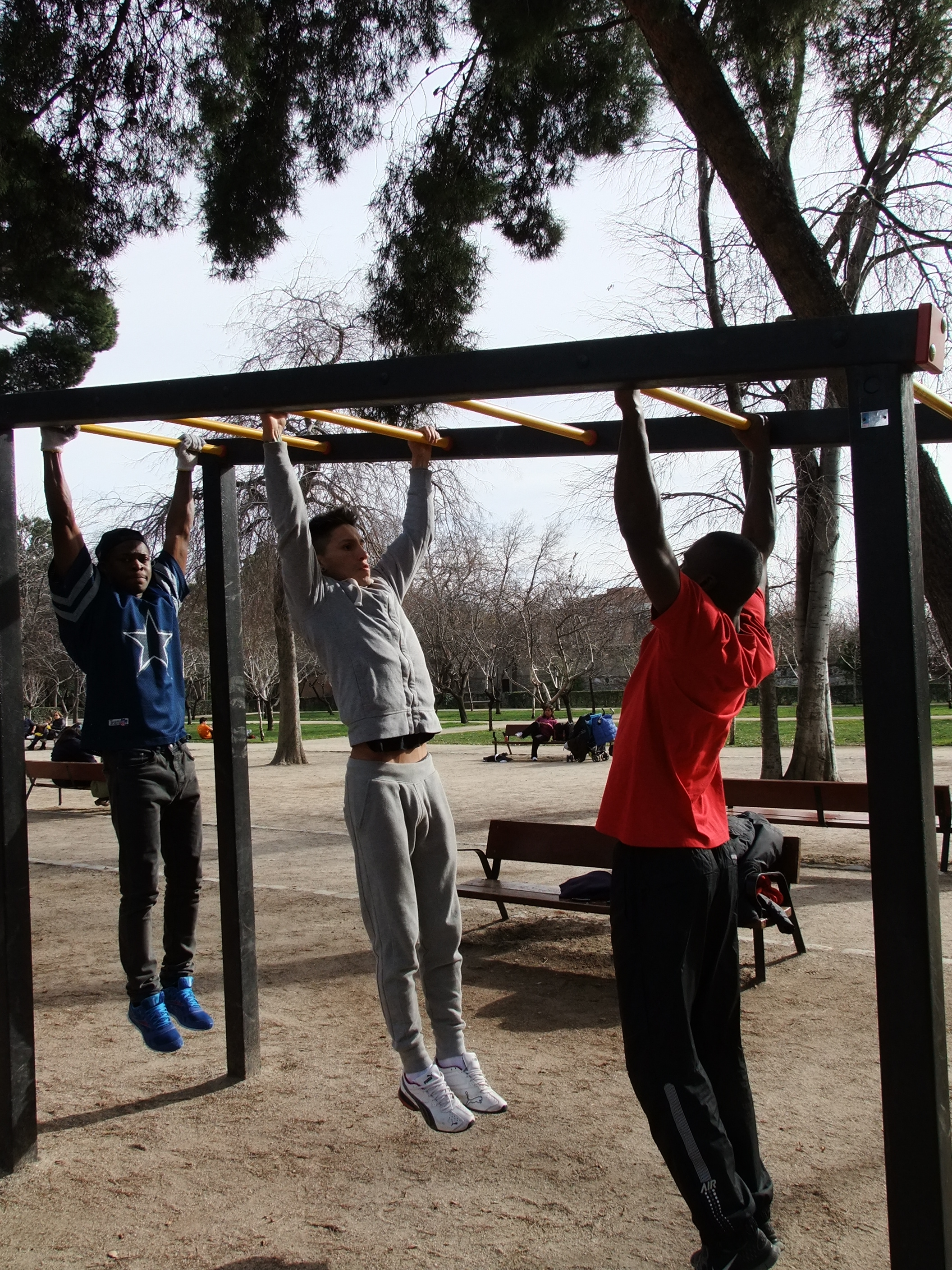 Direkt neben diesem Kreisel gibt es einen kleinen „Fitnesspark“. Besonders für Frauen ist es wichtig, hier doch mal ein kleines Päuschen einzulegen. Jeglicher Besuch, der mit uns bereits im Retiro war, findet diesen Platz sehr spektakulär. Die Männer werden schnell neidisch, welches sich in Kommentaren wie: „Das mache ich immer morgens nach dem Aufstehen!“ äußert. Die Frauen sind plötzlich echt geschlaucht und MÜSSEN unbedingt noch ein paar Minuten auf der Parkbank verweilen.