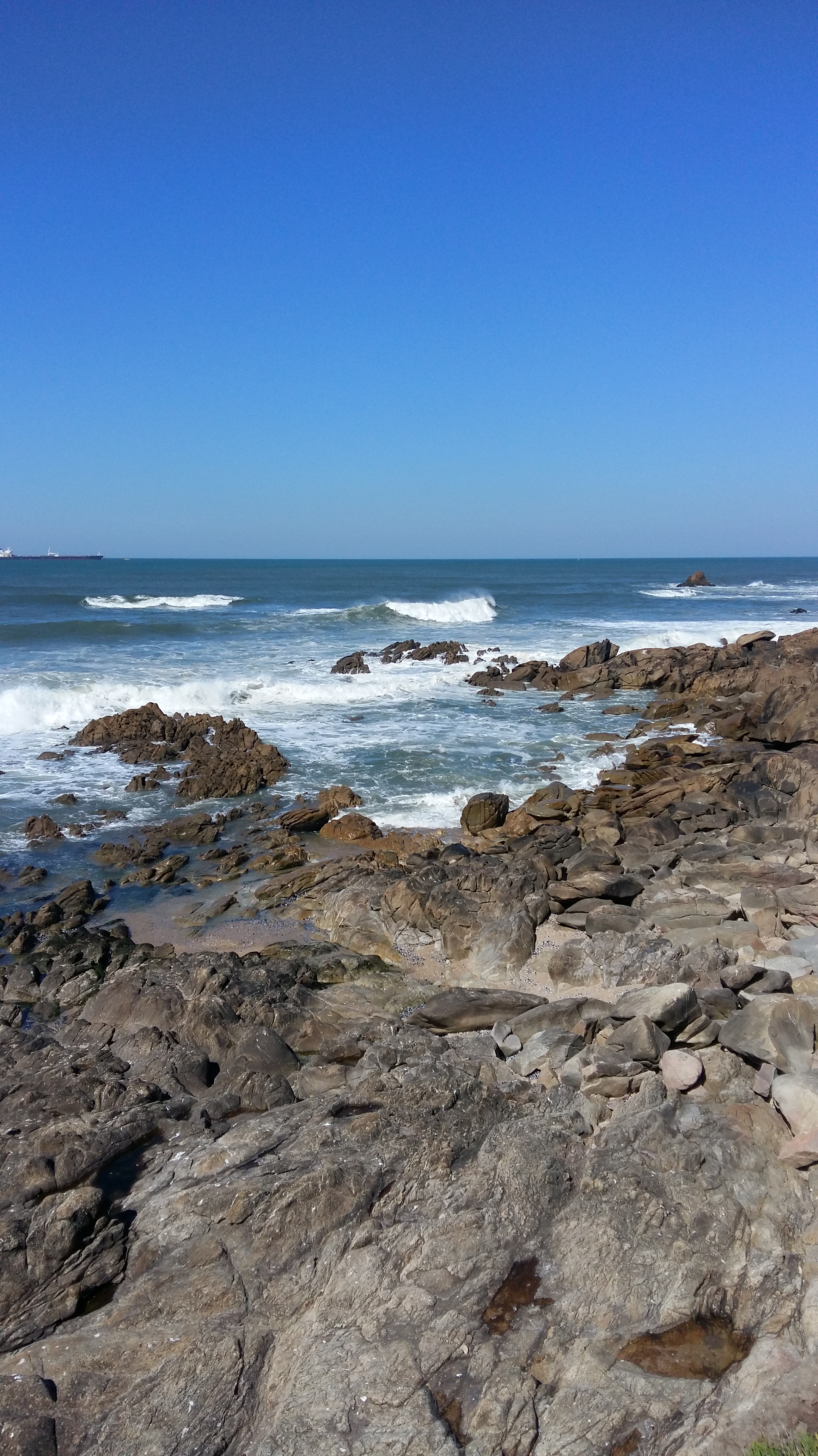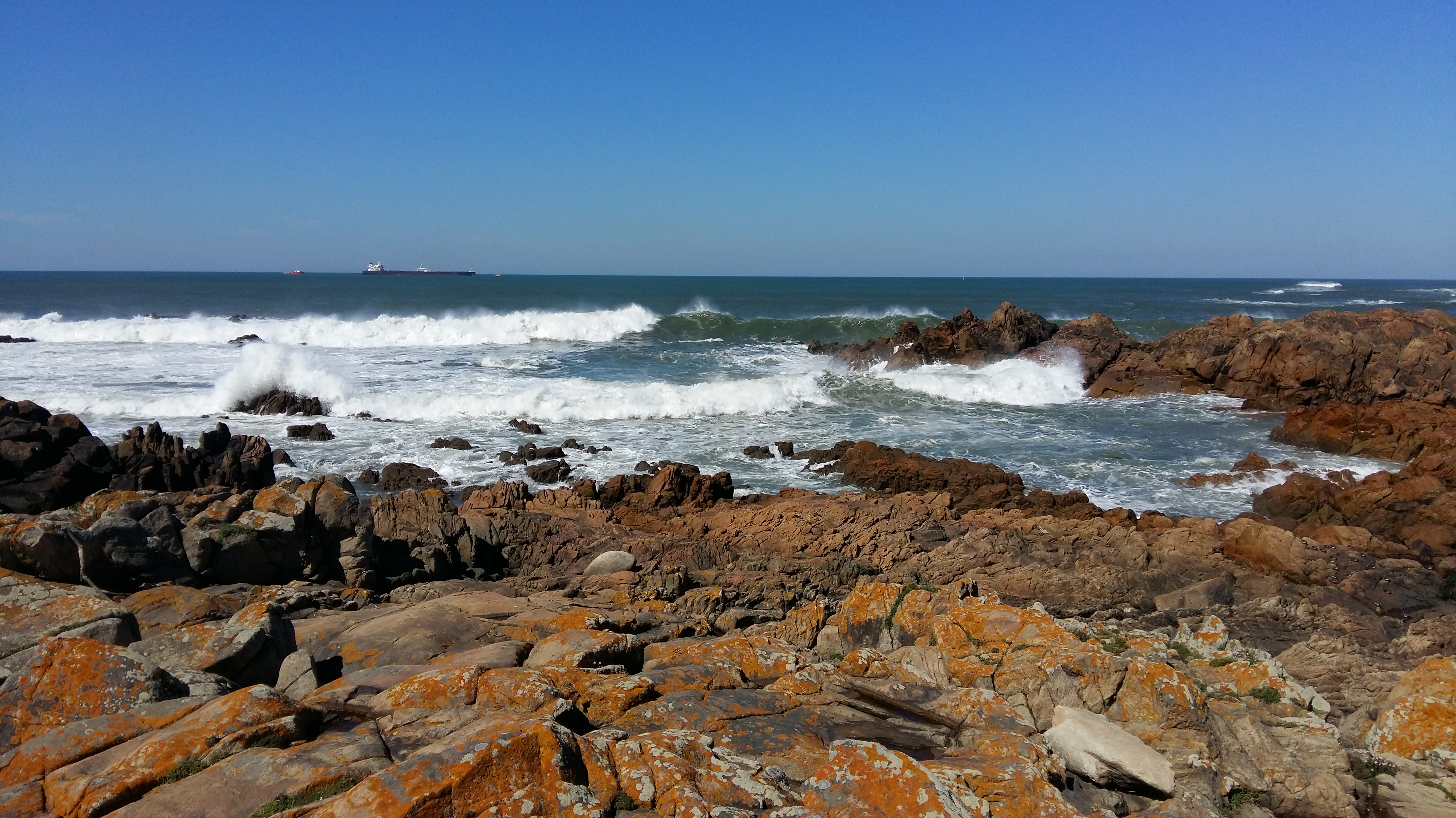 Schnell merke ich, dass meine Gefühle hin und her schwanken. Auf der einen Seite ist es so atemberaubend, am Meer entlang zu laufen. Auf der anderen Seite fühle ich mich völlig unorganisiert, weil ich schnell merken muss, daß ich falsch angezogen bin. Es geht sehr viel Wind, so dass ich zudem mega unsicher bin, ob ich mich genug eingecremt habe. Es liegen noch 12 Tage vor mir – wäre schlecht, sofort mit einem Sonnenbrand zu starten. Also Boxenstop einlegen und um 10 Uhr nochmal Sonnencreme nachlegen und umziehen, d.h. den halben Rucksack wieder umpacken. Es ist irre beim Wandern immer wieder den Wellen zuzuschauen. Mit welcher Wucht diese hier an den Strand schlagen – ist richtig faszinierend. Bilder kann ich euch nicht viele präsentieren, denn für euch wäre jedes Bild fast gleich.